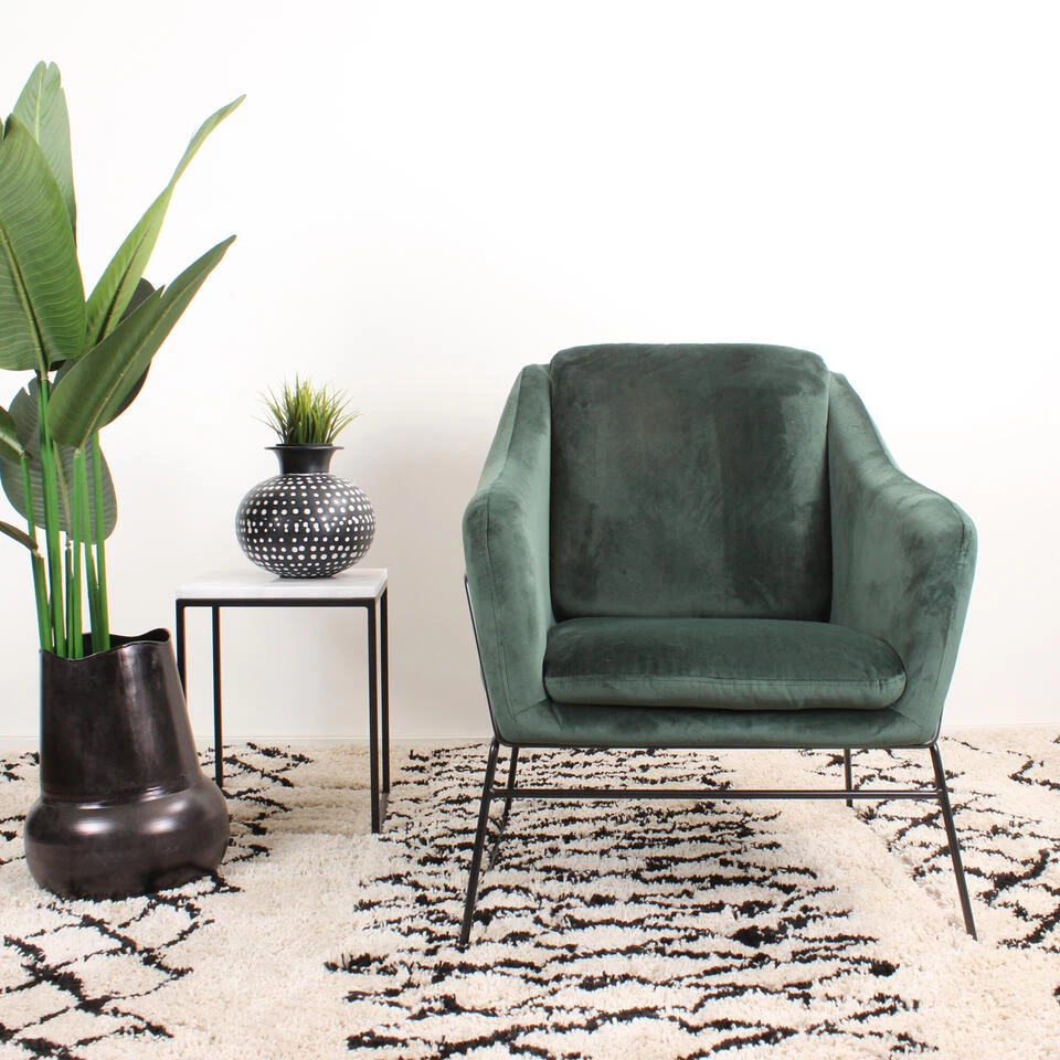 Fauteuil Antonio is afkomstig van onze eigen merk DS4U. Ze is geliefd dankzij haar stijlvolle, luxueuze en trendy uitstraling. Deze uitstraling heeft ze te danken aan haar zachte velvet bekleding. Verder is deze compacte en fijne fauteuil voorzien van een karakteristiek zwart metalen frame met een stoere en industriële look. Dankzij het dikke zitkussen, de halfhoge rugleuning en armleuningen, kan er heerlijk lang op deze stoel gezeten worden. Plaats Antonio in de woonkamer, slaapkamer of in de hal en geniet van een nieuwe en gezellige sfeer. Kortom, dit is een superleuke en stijlvolle fauteuil voor een zeer scherpe prijs. Fauteuil Antonio is verkrijgbaar in vijf populaire kleuren: grijs, roze, groen, zwart en donkerblauw. Voor ieder wat wils!
