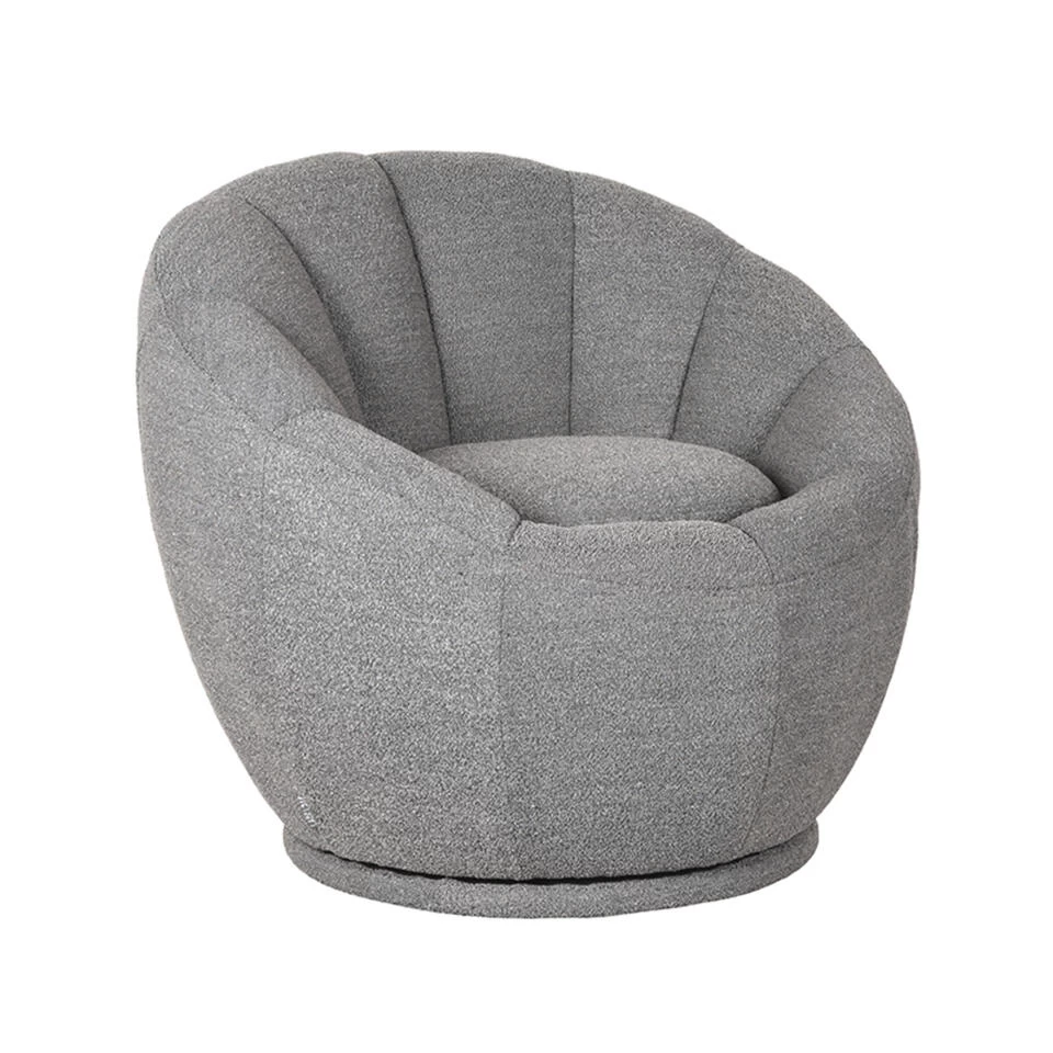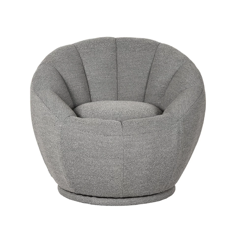 • Crown is verkrijgbaar in drie kleuren bouclérd in grijs bouclé. De handige draaischijf zorgt ervoor dat deze fauteuil 360 graden kan draaien.