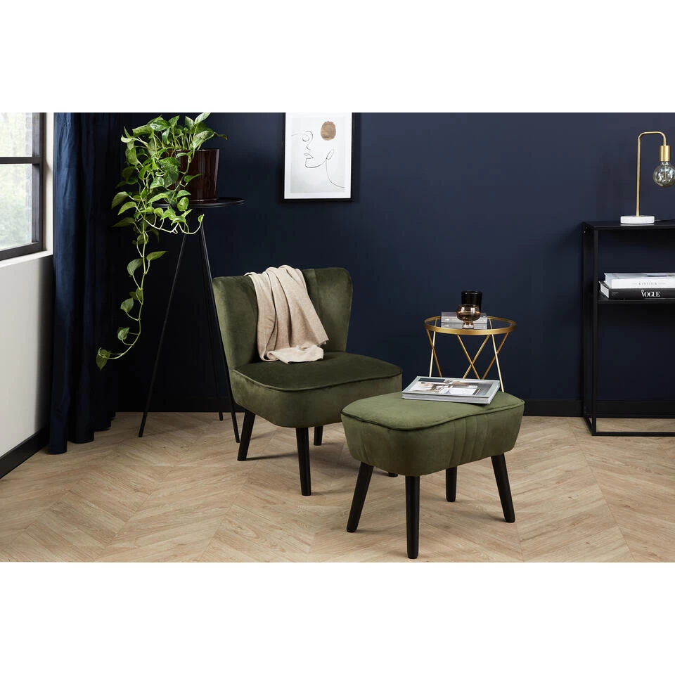 Lifa Living fauteuil Sofia is een prachtige stoel met een comfortabele zit. De stoel heeft een fluwelen zitting en houten poten. De stoel is verkrijgbaar in 4 verschillende kleuren: olijfgroen, crème, oud roze en zwart.